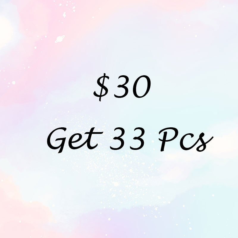 For $30 you get 33 pcs, which translates to $0.9 per piece